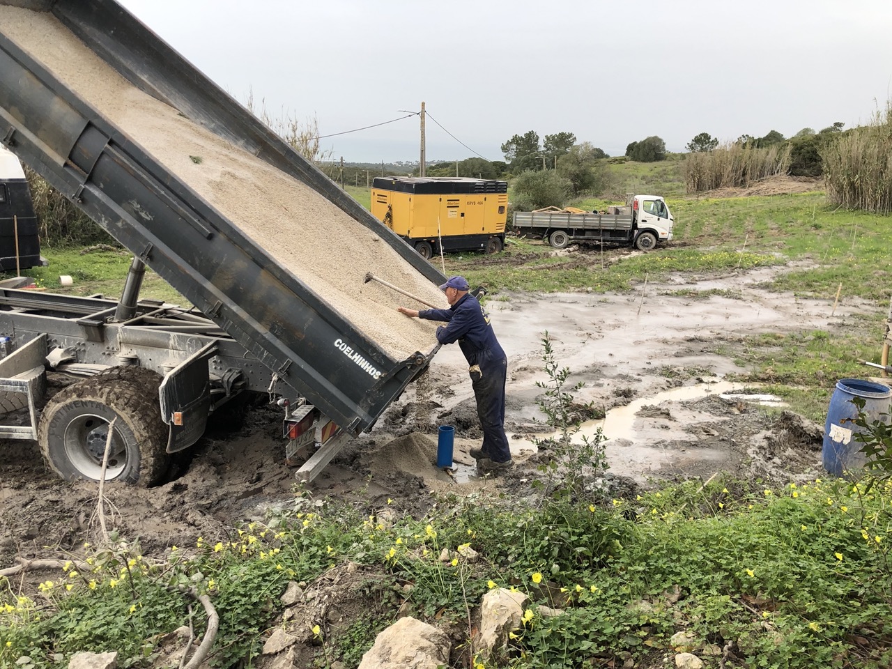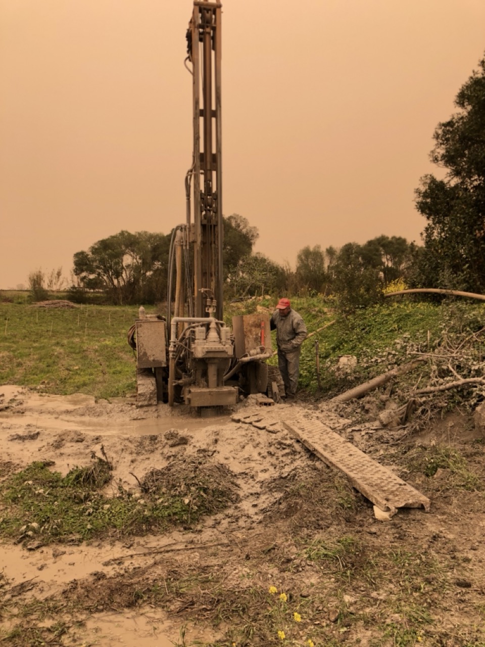 It took about three days of setting up, drilling and preserving the hole. A lot of machinery is needed and the area became very quickly a big mess. They are just there to make a hole, not minding us or the land.