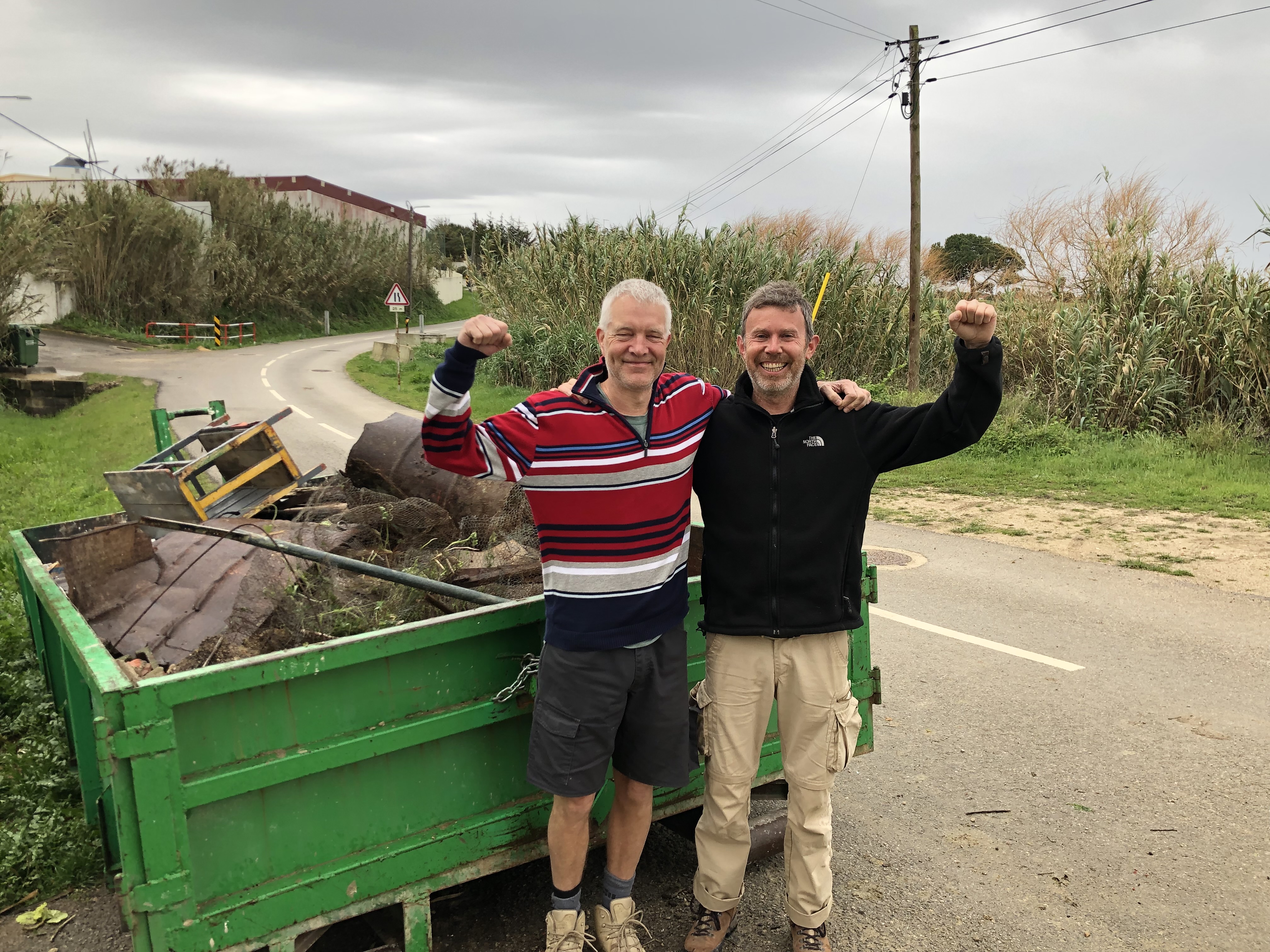 We still had the container that we ordered for the rumble of the renovation. Together we dumped all kinds of stuff that was left somewhere on the land in the past. Like several old metal poles, heavy because of their cement base which we had to break with hammers. Willem was also helpful putting an old cupboard together.