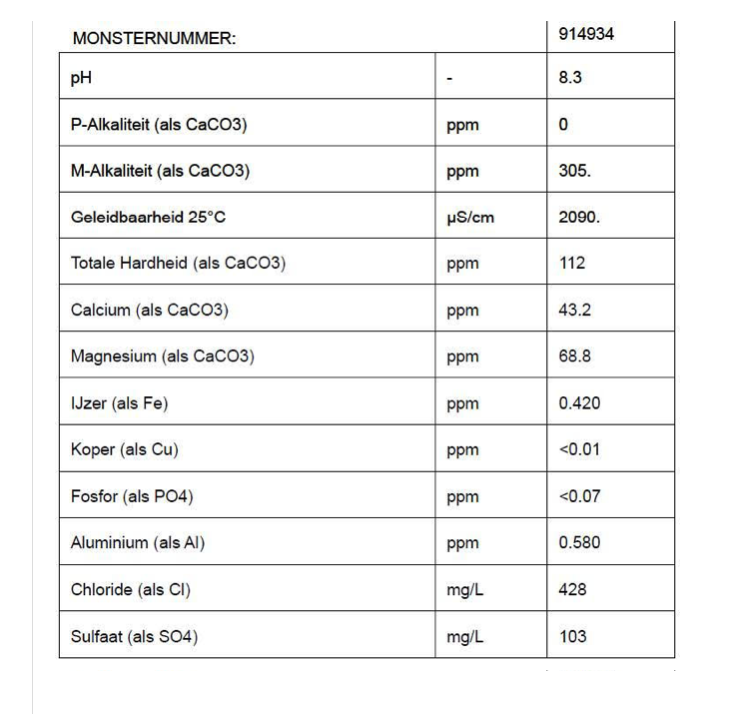 In daily life Willem is selling and maintaining industrial water solutions. He took home some water and had it tested: soft water with some iron and a little on the high side with Chloride. Not sure how our plants will feel about that.