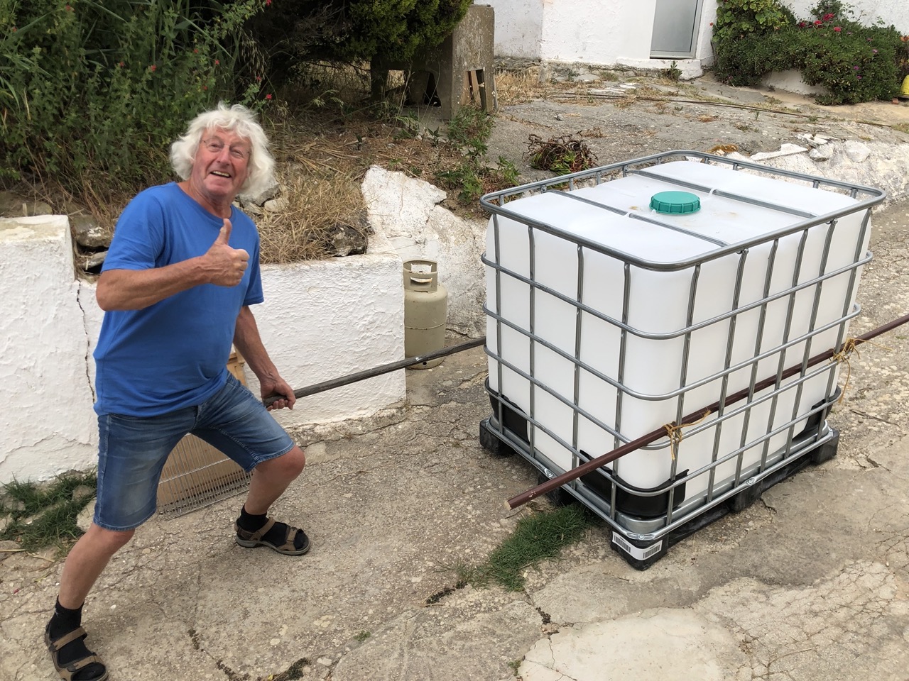 Cock found a nifty way bringing our new water containers high up the land, by carrying each container with two sticks and four people. Worked great!
